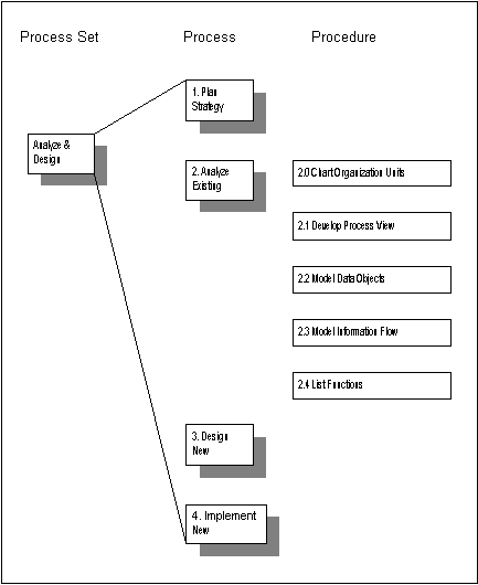 Build a set of processesA process is a way of doing things, so you can often build it out of a series of procedures that must be done in a particular order. 1. In the menu or table of contents and headings, number the names of each process set if you recommend or require that the user carry each set in order. 2. Within each process set, number the processes, if they must be done in order. 3. Link from the brief description of each process to the group of procedures needed to carry it out. In this way, users can pick the right process set (say, Analysis and Design), drill down to individual processes, such as planning a strategy, analyzing the existing system, designing a new system, and implementing the new system. You are evolving a menu system leading users from the top level (the process set) to the mid-level processes, and down into the individual procedures. |