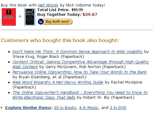 This kind of personalization goes against all our traditions in writing. In the past, as writers, we got to define the structure of the information. Sure, we may have been considerate of the needs of our readers. But we never let them change our table of contents. Here are some best practices, with examples from Lycos and Amazon. |